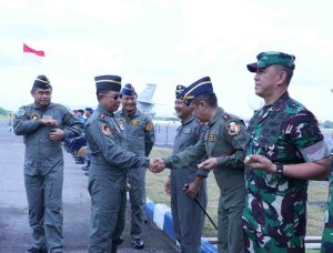 Kabarones.com- Madiun, Penkoopsud II. Panglima Komando Operasi Udara II (Pangkoopsud II) Marsda TNI Deni Hasoloan S., menyambut kedatangan Panglima TNI Jenderal TNI Agus Subiyanto, S.E., M.Si., dan Kepala Staf Angkatan Darat (Kasad) Jenderal TNI Maruli Simanjuntak, M.Sc., di Shelter Skadron Udara 14 Lanud Iswahjudi, Madiun, Jawa Timur, Kamis (11/4/2025).
