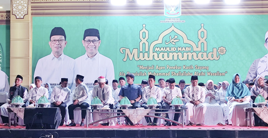SOPPENG, KABARONES.com – Ribuan masyarakat memadati Lapangan Gasis Watansoppeng, Sabtu malam (20/9/2025), dalam peringatan Maulid Nabi Muhammad SAW yang digelar Pemerintah Kabupaten Soppeng bekerja sama dengan Tim Penggerak PKK dan BAZNAS. Suasana khidmat penuh kekeluargaan ini dirangkaikan dengan penyaluran zakat, infak, dan sedekah (ZIS) bagi ratusan penerima manfaat.